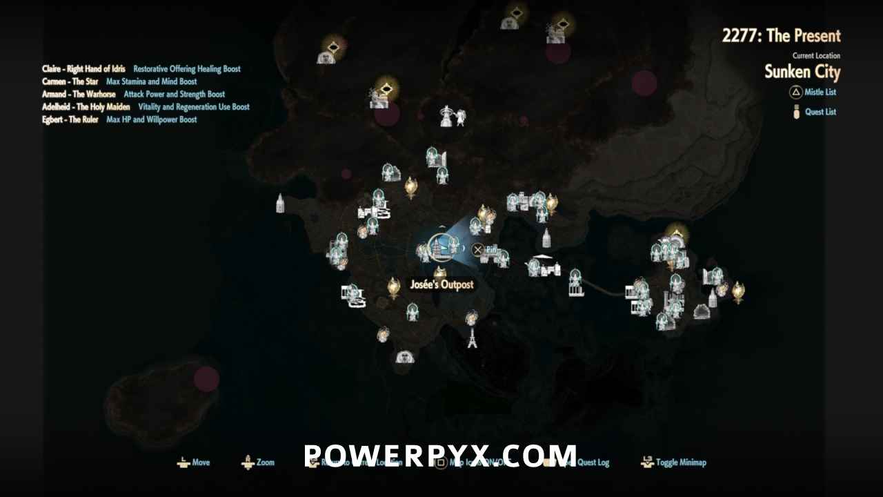 The Sunken City is the second area you’ll visit, where you’ll explore both 2277: The Present, as well as 2179: The Hero Josée’s Era. You’ll have access to the entire map right away, but some dungeons can only be accessed in 2179: The Hero Josée’s Era.